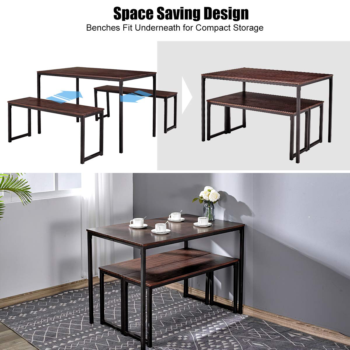 Pick the best dining room set from 2021 design world. The legs are not straight and they taper in at the bottom. The set includes a dining table, dining bench, 2. Switching individual chairs for a dining table set with a bench frees up space, allowing room for one more person around the table. Add extra seating with a contemporary flair by choosing a bench for your dining room.