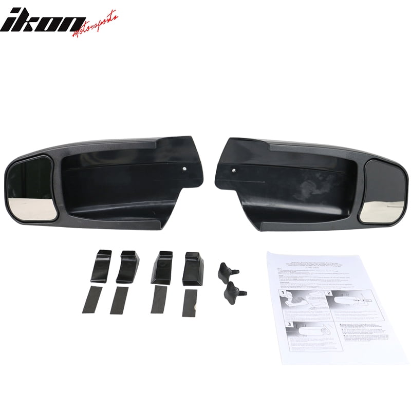 These custom towing mirror extensions easily clip on with no additional hardware. Dodge ram 1500 leveling kits & ram rebel leveling kits 3.0l v6 ecodiesel, 3.6l v6, 3.7l v6, 4.7l v8, 5.7l v8, 5.9l v8, 6.2l v8 supercharged, 8.3l v10 select your year to shop dodge ram 1500 leveling kits & ram rebel leveling kits Towing mirrors the ocam extendable towing mirrors are designed for towing trailers, boats, caravans and horse floats. Total approximate retail value of grand prizes available is $1,500.00. The large flat mirror is electric (for most makes and models) and operated using the vehicle's factory controls. Snap & zap custom towing mirror set for 2019 and newer gmc sierra 1500 and chevrolet silverado 1500. The winner will be selected in a random drawing conducted on or about september 1, 2021 from among all entries properly received during the promotion period. Jul 09, 2018 · these mirror extensions are designed specifically for certain make and year models of the dodge ram carrying the 1500, 2500, and 3500 badge so you can expect its design to seamlessly flow from your original equipment. For best results, remove the towing mirror when not in use, and store in a cool dry place. The extension does not interfere with the oe mirror glass. Odds of winning each grand prize depend on the number of eligible entries received. Vehicle mirrors can be folded without removing the extensions. Custom designed to match oem mirror color and texture.